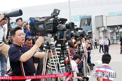 圖:大批媒體在桃園機(jī)場守候陳云林包機(jī)抵臺