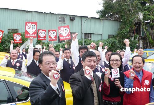 1月4日,“無煙臺灣,Yes We Can!” 數(shù)十名臺灣計程車司機(jī)共同誓師響應(yīng)“煙害防治法”,在車體上張貼明顯的禁煙標(biāo)識。距離臺灣1月11日正式實行“煙害防治法”僅剩一周時間,臺灣的禁煙宣導(dǎo)活動也進(jìn)入總動員。中新社發(fā) 路梅 攝