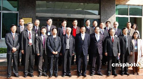 一月九日上午,海協(xié)會與海基會聯(lián)合參訪團在廣州考察一家臺資企業(yè)?疾旖Y(jié)束后,臺灣;鶗麻L江丙坤接受兩岸記者聯(lián)合采訪。中新社發(fā) 柯小軍 攝