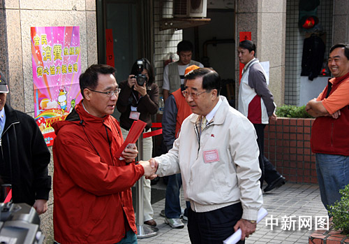 1月18日上午,備受全臺和外界關(guān)注的消費(fèi)券開始在臺灣各發(fā)放所發(fā)放。圖為臺灣內(nèi)政部門主管消費(fèi)券發(fā)放的負(fù)責(zé)人廖了以(右一)今天上午到消費(fèi)券發(fā)放所督導(dǎo)。鼓勵臺灣民眾善用消費(fèi)券,積極促進(jìn)內(nèi)需,擴(kuò)大消費(fèi)。陳立宇 攝