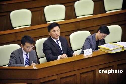 二月二十四日,香港特區(qū)財(cái)經(jīng)事務(wù)及庫(kù)務(wù)局局長(zhǎng)陳家強(qiáng)(中),在立法會(huì)出席雷曼事件相關(guān)聆訊。中新社發(fā) 譚達(dá)明 攝