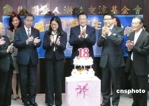 三月九日,臺(tái)灣海峽交流基金會(huì)在臺(tái)北舉辦成立十八周年慶;顒(dòng)。該會(huì)董事長(zhǎng)江丙坤表示,兩岸“大三通”基本實(shí)現(xiàn)后,其效果逐漸顯現(xiàn),海基會(huì)未來(lái)將會(huì)繼續(xù)推動(dòng)兩岸制度性協(xié)商,共期兩岸和平,經(jīng)濟(jì)繁榮。中新社發(fā) 路梅 攝