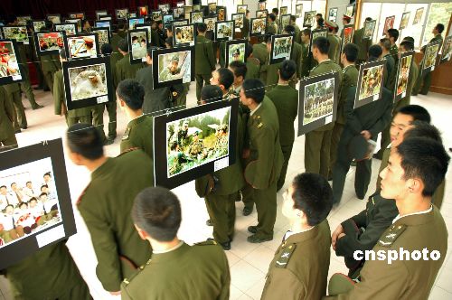 10月18日,由濟南軍區(qū)某部組織舉辦的慶祝黨的“十七大”攝影書畫展開幕。近兩百幅生動的照片和照片背后一個個感人的故事。中新社發(fā) 梁志杰(部隊) 攝