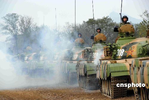 10月底,“鐵拳-2007”復(fù)雜電磁環(huán)境下機(jī)步師實(shí)兵檢驗(yàn)性演習(xí)完成電磁對抗,進(jìn)入實(shí)兵交戰(zhàn)階段。圖為裝甲部隊(duì)向演習(xí)地域集結(jié)。中新社發(fā) 周和平 攝