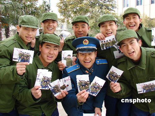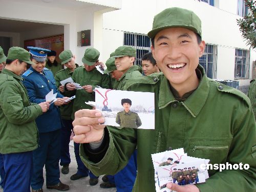 1月31日,春節(jié)臨近,濟(jì)南空軍某飛行學(xué)院為新兵們免費拍攝軍旅生活照片。中新社發(fā) 耿國慶 攝