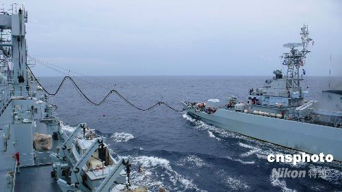 9月中旬,中國(guó)海軍南海艦隊(duì)某勤務(wù)船大隊(duì)與作戰(zhàn)艦艇在某海域進(jìn)行海上協(xié)同補(bǔ)給訓(xùn)練。該大隊(duì)立足實(shí)戰(zhàn),不斷探索海上保障新模式,綜合保障能力得到大幅提升。中新社發(fā) 劉林 攝