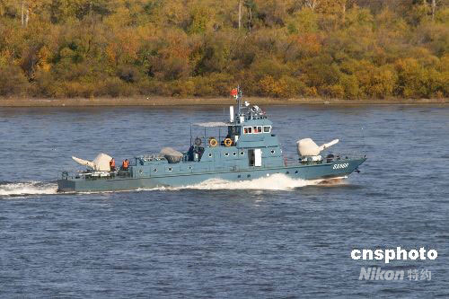 2008年10月4日,駐黑河某邊防巡邏艇大隊首批40余艘執(zhí)勤船艇及官兵,圓滿完成2008年度中俄界河黑龍江明水期巡邏執(zhí)勤任務(wù)后勝利凱旋。進入10月,黑龍江上游江面即將結(jié)冰封凍,駐守在中俄三千里界江上的執(zhí)勤船艇官兵陸續(xù)返航。中新社發(fā) 邱齊龍 攝