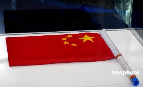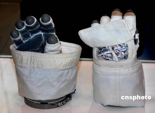 11月4日,在廣東珠海市舉行的“第七屆中國國際航空航天博覽會”上,航天員翟志剛在太空出艙漫游時揮舞的國旗和所戴的手套,首次與觀眾見面!吧裰邸逼咛栵w船軌道艙(正樣備份品)以及"神舟"七號飛船返回艙模型也將展出。中新社發(fā) 楚天行 攝
