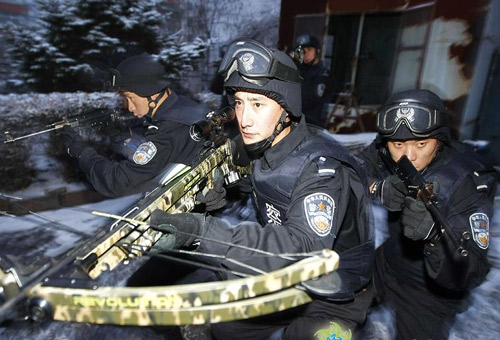 昨天,哈市公安局巡警特警支隊首次使用新裝備——美式弓弩進(jìn)行實戰(zhàn)訓(xùn)練。據(jù)了解,現(xiàn)代弓弩有效射程是200米,以無光、無聲和不受氣候條件影響的優(yōu)勢,可出其不意地實施攻擊。這種弓弩的配備,可使冰城特警如虎添翼,更有力地打擊犯罪,維護(hù)社會治安和人民生命財產(chǎn)安全。(張大巍)