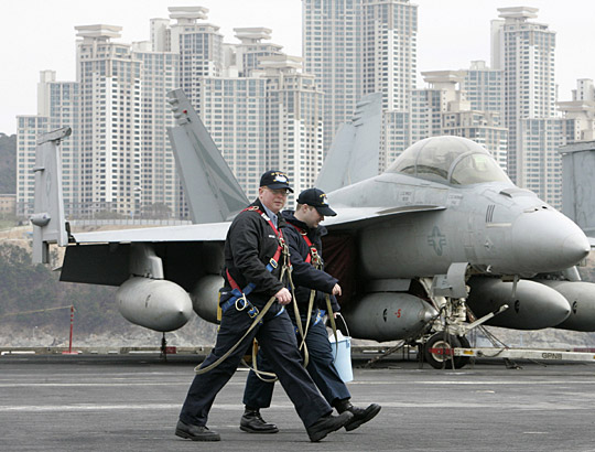 中新網(wǎng)3月11日電 據(jù)韓聯(lián)社報(bào)道,將參加韓美“關(guān)鍵決斷”聯(lián)合軍演的美國(guó)第3艦隊(duì)核動(dòng)力航母“約翰·斯坦尼斯”號(hào)(9.6萬(wàn)噸),11日上午抵達(dá)了釜山海軍作戰(zhàn)司令部基地。