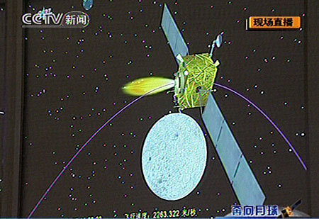圖:嫦娥一號衛(wèi)星第一次近月制動開始