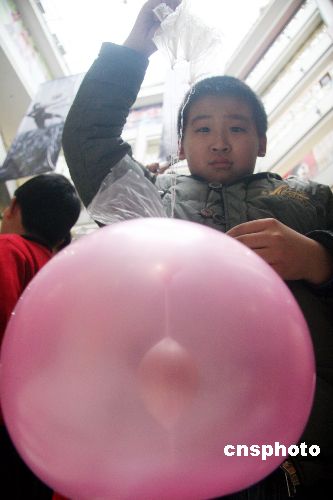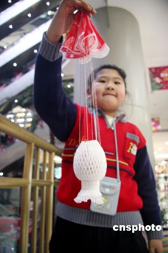 12月24日,來自沈陽市12所小學的100多名小學生在太原街的東順百貨商店的共享大廳內(nèi)玩起了領人矚目的“雞蛋撞地球”的大賽。這次比賽是沈陽晚報主辦的,旨在提高小朋友們的動腦動手的能力及開發(fā)他們的想象力,讓小朋友們利用一切可以利用的設備及材料,做出各種“設備”保護雞蛋從高空中墜下撞到地面后不破損。誰使用的“設備”最輕誰就獲勝,最后有三名小同學以1.2克的同樣重量獲得并列第一名。中新社發(fā) 趙敬東 攝