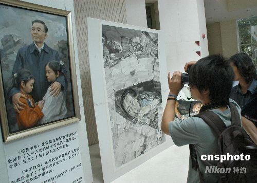 5月23日,“心系汶川·畫(huà)的慰問(wèn)——廣州美術(shù)學(xué)院師生美術(shù)作品特別展”在廣州美術(shù)學(xué)院美術(shù)館展出,638件作品是該校離退休老藝術(shù)家、在校師生和畢業(yè)生等為四川汶川大地震災(zāi)區(qū)捐出的力作,義賣后款項(xiàng)將全部支援地震災(zāi)區(qū)。中新社發(fā) 羅仰明 攝
