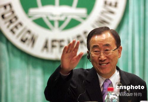 7月1日下午,聯(lián)合國(guó)秘書長(zhǎng)潘基文抵達(dá)北京,開始對(duì)中國(guó)進(jìn)行為期3天的正式訪問。圖為潘基文在外交學(xué)院發(fā)表演講。中新社發(fā) 張宇 攝