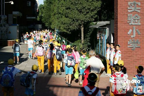 9月1日,北京市中小學(xué)開學(xué)第一天,增加體育課程成為新學(xué)年的最大亮點(diǎn)。據(jù)了解,北京市各區(qū)縣都要求學(xué)校把以往“零散”、“非正規(guī)”的體育活動改成正式的體育課,并列入正式的課程表中,每天都要上一節(jié)體育課。中新社發(fā) 富田 攝