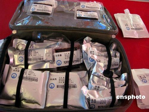 2008年11月19日消息,在北京軍博舉辦的《飛天壯歌——神舟七號載人航天飛行紀(jì)實攝影展覽》上,展出了由中國航天食品研發(fā)中心航天食品研究室研制的神舟七號載人航天飛行員使用的航天食品。中新社發(fā) 鄒憲 攝