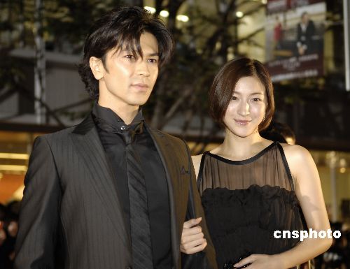 圖為日本著名藝人廣末涼子(右)和武田真治亮相紅地毯。中新社發(fā) 侯宇 攝