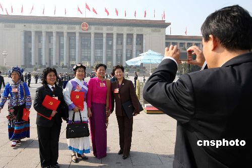 十月二十一日,中國共產(chǎn)黨第十七次全國代表大會在北京人民大會堂閉幕,代表們會后在人民大會堂前留影。中新社發(fā) 毛建軍 攝