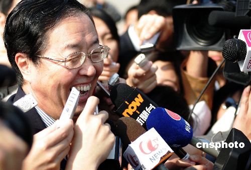 中國(guó)共產(chǎn)黨第十七次全國(guó)代表大會(huì)10月21日上午在北京人民大會(huì)堂閉幕。大會(huì)選舉產(chǎn)生了新一屆中央委員會(huì)和中央紀(jì)律檢查委員會(huì)。圖為當(dāng)選新一屆中央委員會(huì)委員的央行行長(zhǎng)周小川在大會(huì)堂外被記者“圍攻”。中新社發(fā) 任晨鳴 攝