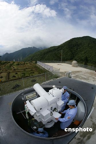 10月22日,西昌衛(wèi)星發(fā)射中心技術人員調(diào)試跟蹤火箭前期軌道的光學經(jīng)緯儀。中國國防科工委當晚在北京宣布,“嫦娥一號”衛(wèi)星將于24日至26日在西昌衛(wèi)星發(fā)射中心擇機發(fā)射,首選發(fā)射窗口為24日18時左右。中新社發(fā) 秦憲安 攝