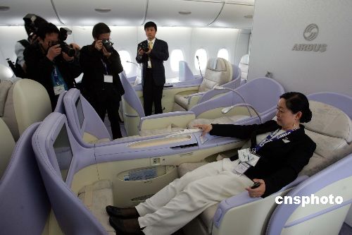 A380上海展示全新雙層飛機內(nèi)飾。