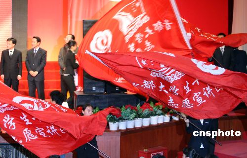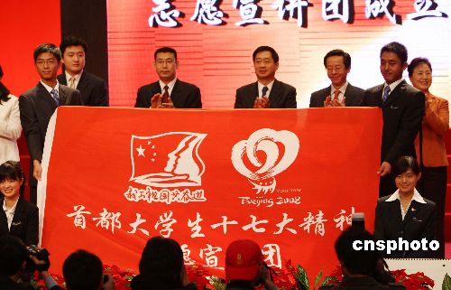 十一月四日,首都大學(xué)生十七大精神志愿宣講團(tuán)成立大會(huì)在北京舉行,來(lái)自各界青少年代表千余人參加了大會(huì)。中新社發(fā) 任海霞 攝
