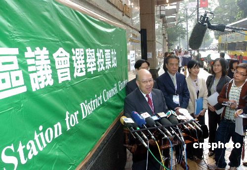 ·香港區(qū)議會(huì)選舉舉行 曾蔭權(quán)吁市民踴躍投票(圖)