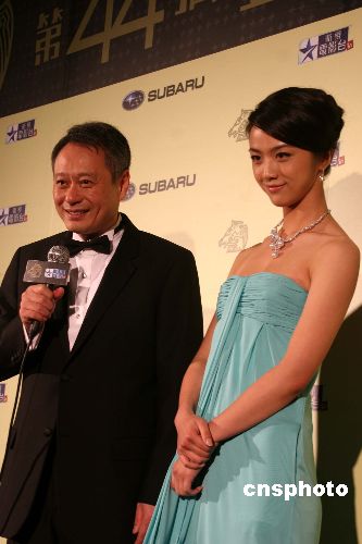 十二月八日晚,第四十四屆金馬獎頒獎典禮在臺北小巨蛋舉行。李安獲得最佳導(dǎo)演獎,右為奪得新人獎的湯唯。