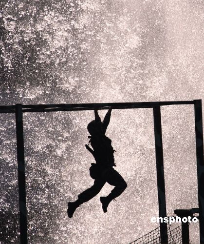 圖為參訓(xùn)士兵快速通過橫梯。