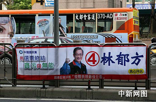圖為臺北街頭的一幅競選廣告。