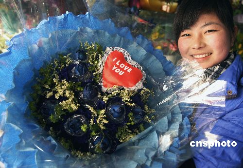 2月13日,安徽滁州的鮮花商店讓各色玫瑰花唱起主角,商家們看好節(jié)日經(jīng)濟(jì),積極備戰(zhàn)情人節(jié)。市場上,紅色玫瑰以價(jià)廉物美占居份額最多,高檔品種有藍(lán)色妖姬、七彩皇后、綠美人等。中新社發(fā) 王家國 攝