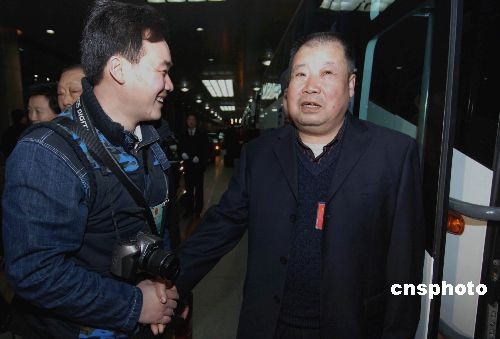 三月二日清晨六時余,有“皇帝作家”之稱的十一屆全國人大代表、歷史小說家凌解放(筆名“二月河”),隨河南代表團乘火車抵京,出席即將于五日開幕的第十一屆全國人大一次會議。圖為他在火車站接受中新社記者采訪。 中新社發(fā) 王東明 攝