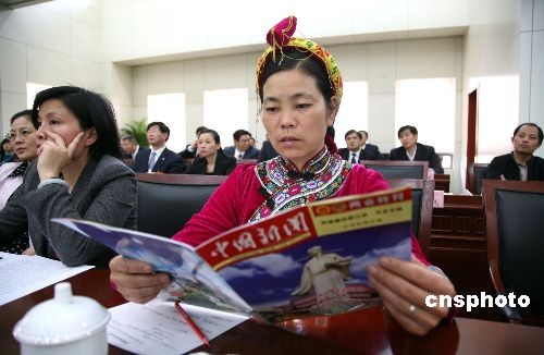 由中國新聞社出版的《中國新聞》兩會特刊,在全國兩會期間受到代表、委員的歡迎,他們評價《中國新聞》兩會特刊內(nèi)容權(quán)威、角度獨特、行文輕松活潑。圖為江西代表團(tuán)畬族人大代表在閱讀《中國新聞》兩會特刊。中新社發(fā) 吳慶才 攝