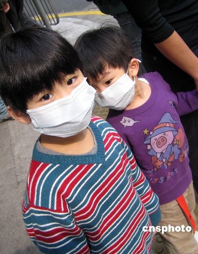 三月十四日,兩位戴口罩的香港小童在保姆的帶領(lǐng)下走過街頭。因多所學(xué)校學(xué)生患流感并有三名兒童因流感死亡,香港小學(xué)、幼兒園等自昨日起全部停課兩星期,以防止疫情擴大。中新社發(fā) 王麗南 攝