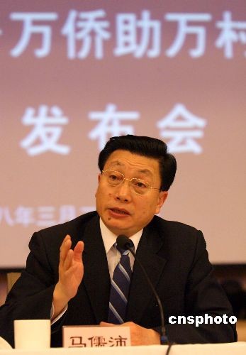3月24日,中國(guó)國(guó)務(wù)院僑辦與農(nóng)業(yè)部聯(lián)合召開(kāi)新聞發(fā)布會(huì),正式啟動(dòng)“僑愛(ài)工程——萬(wàn)僑助萬(wàn)村活動(dòng)”。 圖為國(guó)務(wù)院僑辦副主任馬儒沛在新聞發(fā)布會(huì)上講話(huà)。中新社發(fā) 張勤 攝