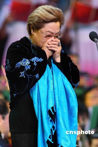 圖為中國著名女歌唱家郭蘭英在演唱《繡金匾》時泣不成聲。中新社發(fā) 富田 攝