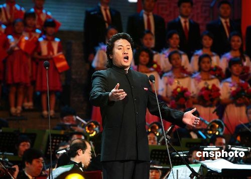 圖為中國著名男高音歌唱家戴玉強高歌《你是這樣的人》。中新社發(fā) 富田 攝