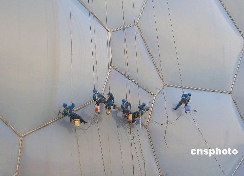 組圖:“蜘蛛俠”為水立方“洗臉”(2)