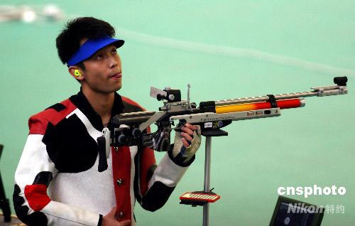 圖:朱啟南為中國隊(duì)射落射擊世界杯首金