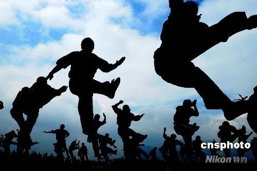 4月下旬,河南登封塔溝武校的練武少年在勤練武功。在聞名海內(nèi)外的河南省登封市少林寺周圍,每天都有數(shù)萬人在習武,練武林中的絕活,他們用精湛武藝展示飛檐走壁、童子功、氣功等。中新社發(fā) 高山岳 攝