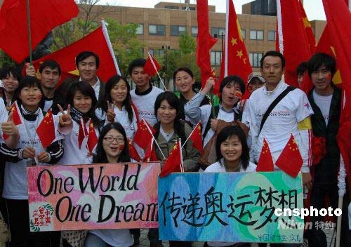4月26日清晨6點,作為北京奧運會火炬?zhèn)鬟f長野段終點的若里公園聚集了大批從日本各地連夜趕來的中國留學生。中新社發(fā) 關(guān)妍 攝