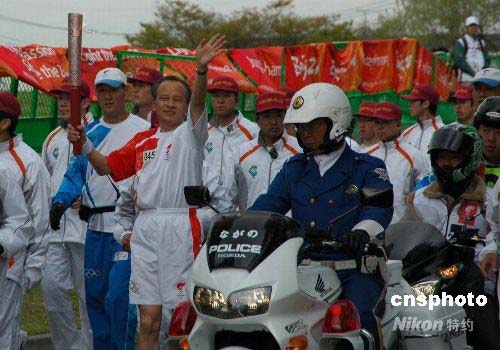 4月26日,北京奧運(yùn)圣火在日本長(zhǎng)野傳遞的過(guò)程中受到中國(guó)在日華僑華人、留學(xué)生以及長(zhǎng)野市民的熱烈歡迎。圖為中國(guó)駐日本大使崔天凱手持火炬向歡呼的人群并揮致敬。中新社發(fā) 關(guān)妍 攝