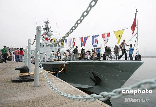 圖為市民在昂船洲軍營參觀艦艇。中新社發(fā) 武仲林 攝