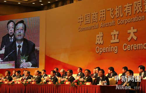 5月11日,國家控股的大型客機(jī)公司——中國商用飛機(jī)有限責(zé)任公司(簡稱中國商飛公司)在上海舉行成立大會(huì)并正式揭牌,新公司將全力打造安全、經(jīng)濟(jì)、舒適、環(huán)保的大型客機(jī),旨在讓中國的大型客機(jī)早日飛上藍(lán)天。孫自法 攝