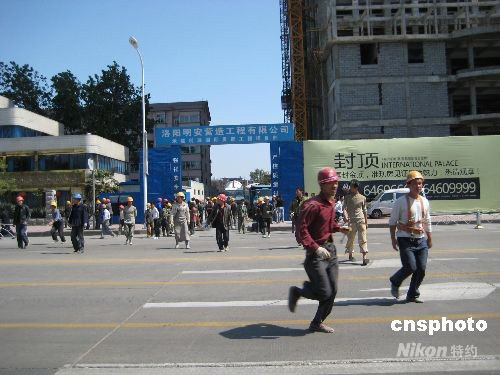 5月12日14時(shí)33分,河南洛陽(yáng)發(fā)生有感地震,房屋和電燈搖擺明顯,眾多市民紛紛上街躲避,目前尚未發(fā)現(xiàn)人員和財(cái)產(chǎn)損失,震源和等級(jí)尚不明確。中新社發(fā) 鞏衛(wèi)東 攝