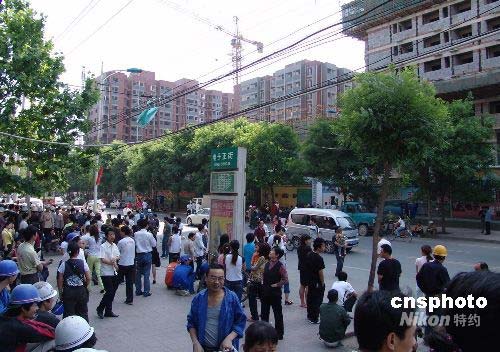 西安市民感覺地震波及,紛紛跑出房屋站在街頭。中新社發(fā) 宋晨陽 攝