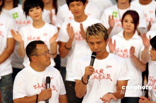 李克勤出席《眾志成城抗震救災》晚會為四川地震災民籌款。中新社發(fā) 武仲林 攝