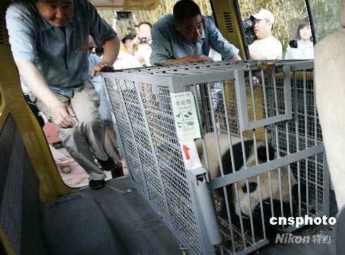 八只來(lái)自四川災(zāi)區(qū)的奧運(yùn)大熊貓平安抵京 (2)