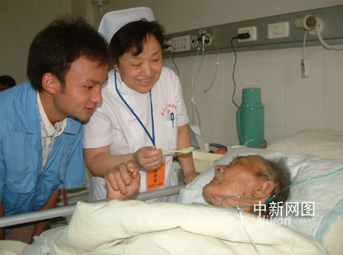 24日晚18點(diǎn),長(zhǎng)途轉(zhuǎn)運(yùn)到武漢大學(xué)中南醫(yī)院的90歲的老人,多發(fā)肋骨骨折,沒(méi)有家屬陪伴,醫(yī)院的老護(hù)士和志愿者一口一口地喂他吃著醫(yī)院免費(fèi)提供的晚餐。據(jù)了解,該院為全部轉(zhuǎn)運(yùn)到該遠(yuǎn)的38位四川災(zāi)區(qū)病人免費(fèi)提供了衣、食、住,讓他們能享受到最好的醫(yī)療服務(wù)。