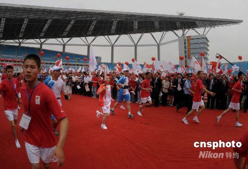 圖:武術(shù)冠軍范雪平任圣火合肥傳遞末棒